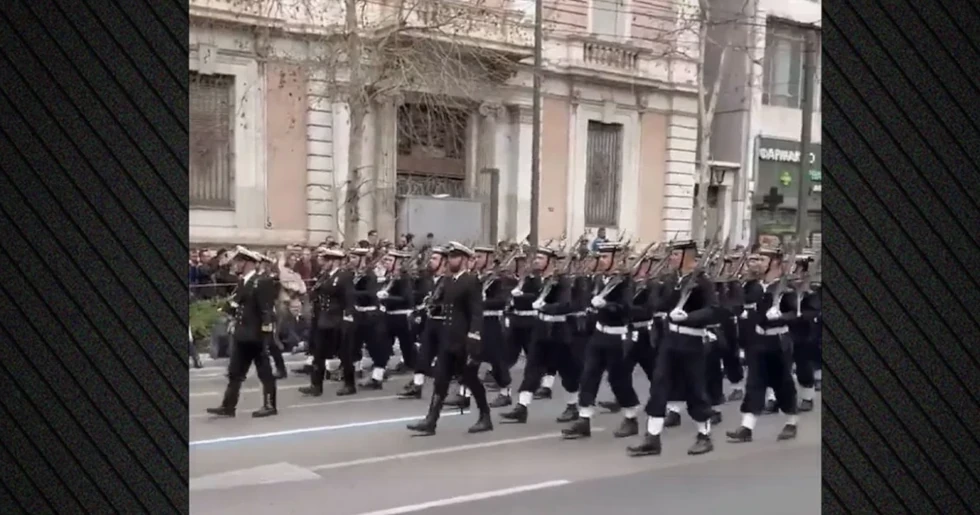 Οι συμμετέχοντες στην παρέλαση δεν επιτρέπεται να επιδίδονται σε συνθήματα, εντούτοις οι δόκιμοι υπαξιωματικοί όχι μόνο υπέπεσαν σε παράπτωμα, αλλά το «έντυσαν» και με υβριστικό περιεχόμενο, καθώς από το βίντεο που αναρτήθηκε στα μέσα κοινωνικής δικτύωσης (σ.σ. έχει αφαιρεθεί ο ήχος στο επίμαχο σημείο), οι σπουδαστές από το τμήμα της ΣΜΥΝ φέρονται να φώναζαν: «Η Κύπρος είναι ελληνική» και συνέχισαν με σύνθημα «γ@μι@τ@@ η Τουρκία», το οποίο επανέλαβαν, περνώντας μπροστά από τον κόσμο.