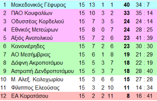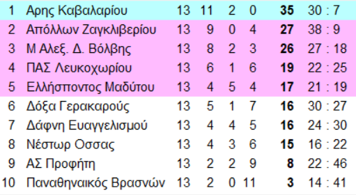 14η αγωνιστική: Ελλήσποντος Μαδύτου-Απόλλων Ζαγκλιβερίου΄, Νέστωρ Οσσας-Μ Αλεξ. Δ Βόλβης, Προφήτης-Δόξα Γερακαρούς, Λευκοχώρι-Παναθηναικός Βρασνών, Αρης Καβαλαρίου-Δάφνη Ευαγγελισμού