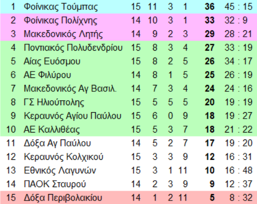αγωνιστική: Ποντιακός Πολυδενδρίου-Φοίνικας Πολίχνης, Κεραυνός Αγίου Παύλου-Φοίνικας Τούμπας, Μακεδονικός Λητής-Εθνικός Λαγυνών, ΓΣ Ηλιούπολης-ΑΕ Καλλιθέας Συκεών, Μακεδονικός Αγ Βασιλείου-Αίας Ευόσμου, ΠΑΟΚ Σταυρού-Δόξα Αγ Παύλου, Κεραυνός Κολχικού-ΑΕ Φιλύρου
