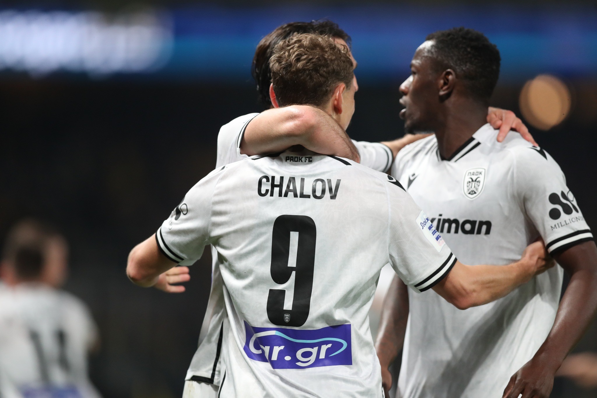 - O Καμαρά πανηγυρίζει με τον Τσάλοφ, το τρίτο γκολ του ΠΑΟΚ