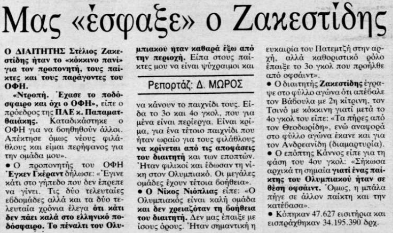 Ήταν 17 Μαϊου του 1990 όταν ο Ολυμπιακός μετά από ένα επεισοδιακό παιχνίδι επικρατούσε της ομάδας του Έιγκεν Γκέραρντ με 4-2.