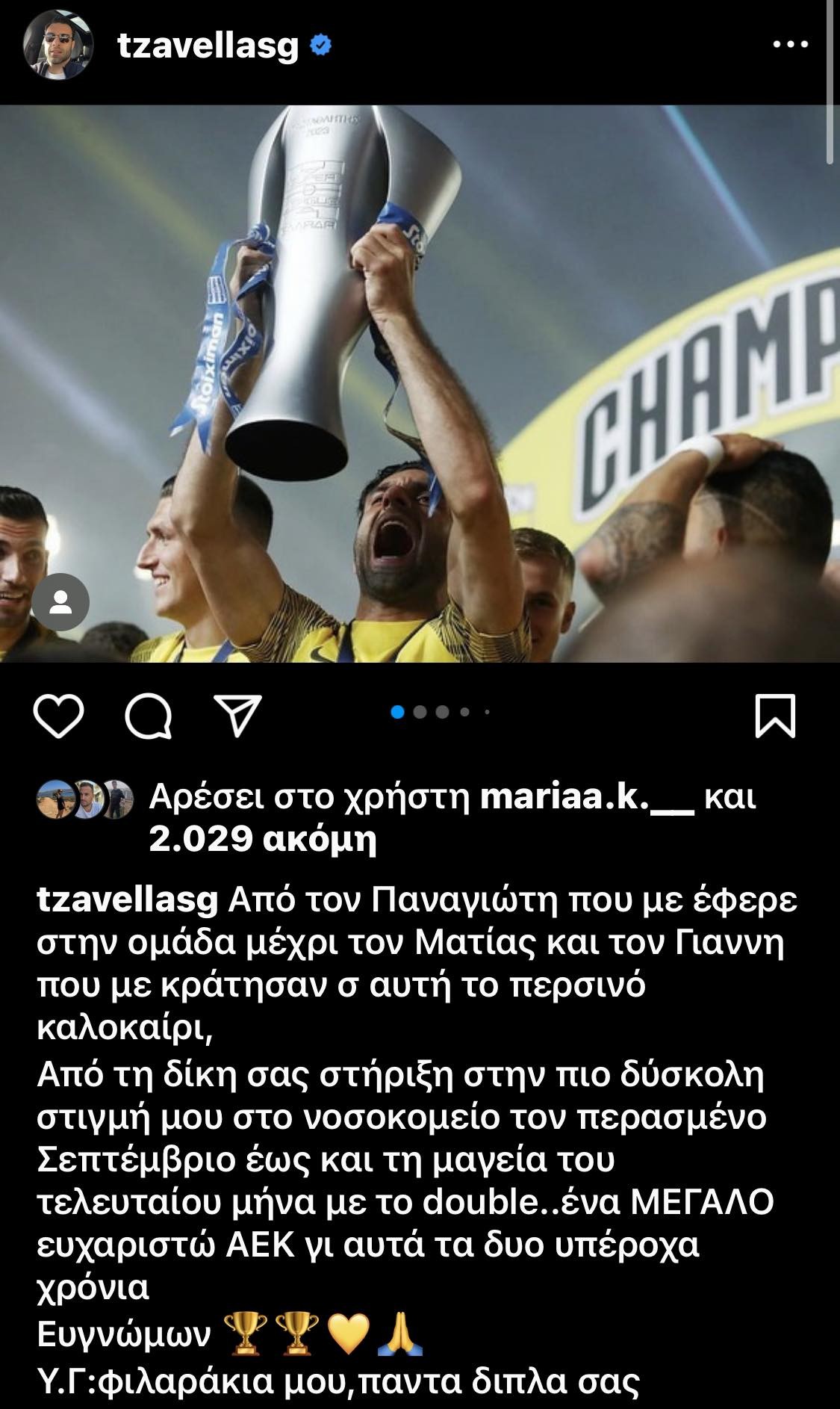 ΑΕΚ: Ανάρτηση με νόημα από τον Τζαβέλλα