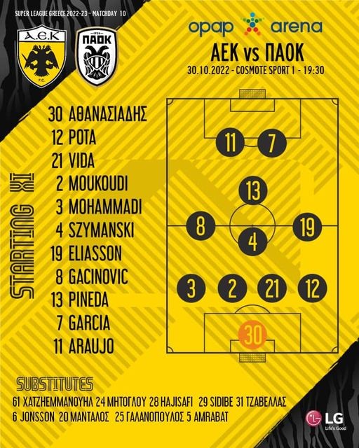 ΑΕΚ: Χωρίς εκπλήξεις η ενδεκάδα της «Ένωσης» κόντρα στον ΠΑΟΚ (pic)