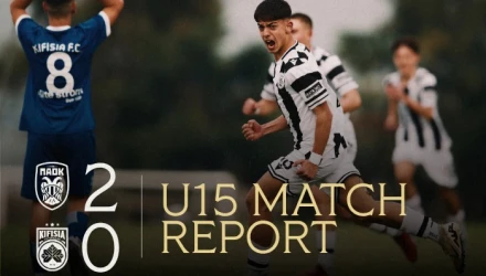 Ο ΠΑΟΚ Κ15 είχε τον έλεγχο του αγώνα από το ξεκίνημα, δημιούργησε αρκετές ευκαιρίες, όμως χρειάστηκε να φτάσει στο δεύτερο ημίχρονο για να βρει τον δρόμο προς τα δίχτυα. Το 1-0 σημείωσε ο Σολωμίδης στο 55ο λεπτό, με δυνατό σουτ, λύνοντας τον γόρδιο δεσμό για την ομάδα του.