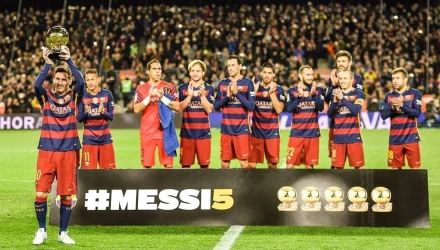 Κατά την είσοδο των παικτών στον αγωνιστικό χώρο του "Καμπ Νου" για το ματς με την Αθλέτικ Μπιλμπάο, ένα γιγάντιο πανό που έγραφε "συγχαρητήρια Λέο" και είχε πάνω τη φιγούρα του Αργεντινού μαζί με τις πέντε «Χρυσές Μπάλες» που έχει κατακτήσει, εμφανίστηκε στις κερκίδες.