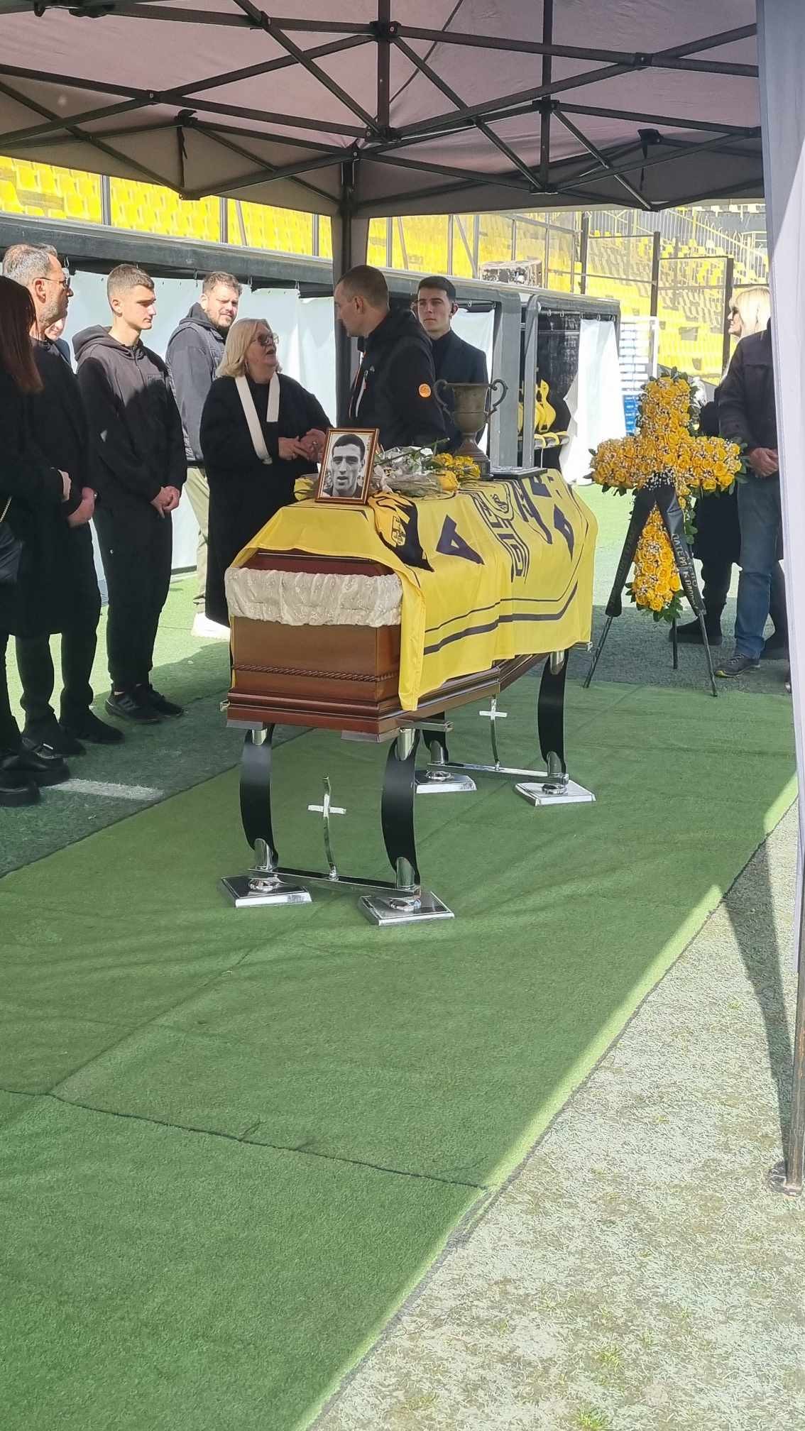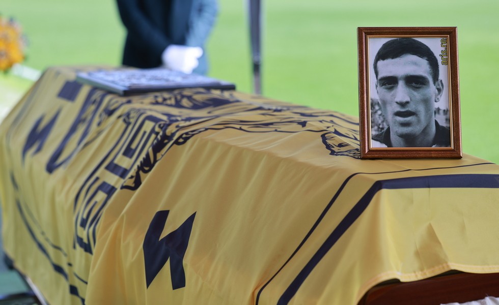 Με μια σημαία του Άρη να καλύπτει το φέρετρο, μια φωτογραφία του και το Κύπελλο του 1970, απλός κόσμος, βετεράνοι ποδοσφαιριστές των κιτρινόμαυρων, παιδιά των ακαδημιών και εκπρόσωποι της πρώτης ομάδας (Μπράμπετς) αποχαιρέτησαν τον εμβληματικό Αλέκο Αλεξιάδη.