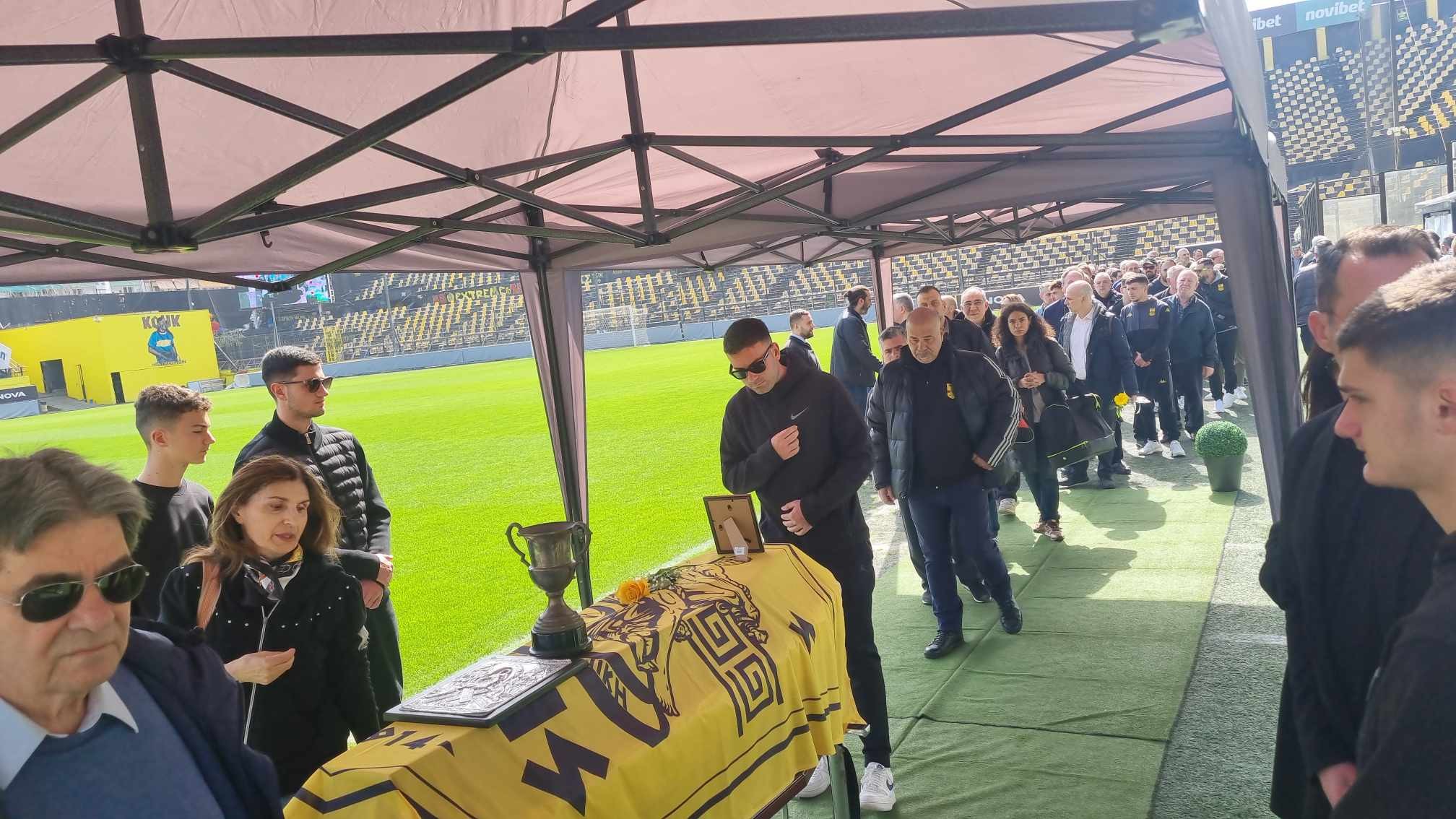 Η σορός του Αλέκου Αλεξιάδη τέθηκε σε λαϊκό προσκύνημα στο «Κλεάνθης Βικελίδης» το πρωί της Πέμπτης (13/3), με δεκάδες απλού κόσμου, όλων των βετεράνων ποδοσφαιριστών, παικτών της τωρινής ομάδας και παιδιά των ακαδημιών να απευθύνουν το «ύστατο χαίρε».