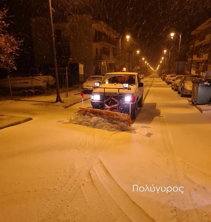 Η τροχαία Χαλκιδικής ζητεί από τους πολίτες να μειώσουν τις μετακινήσεις τους, καθώς η νύχτα έφερε και χαμηλές θερμοκρασίες, κάτω από το μηδέν.