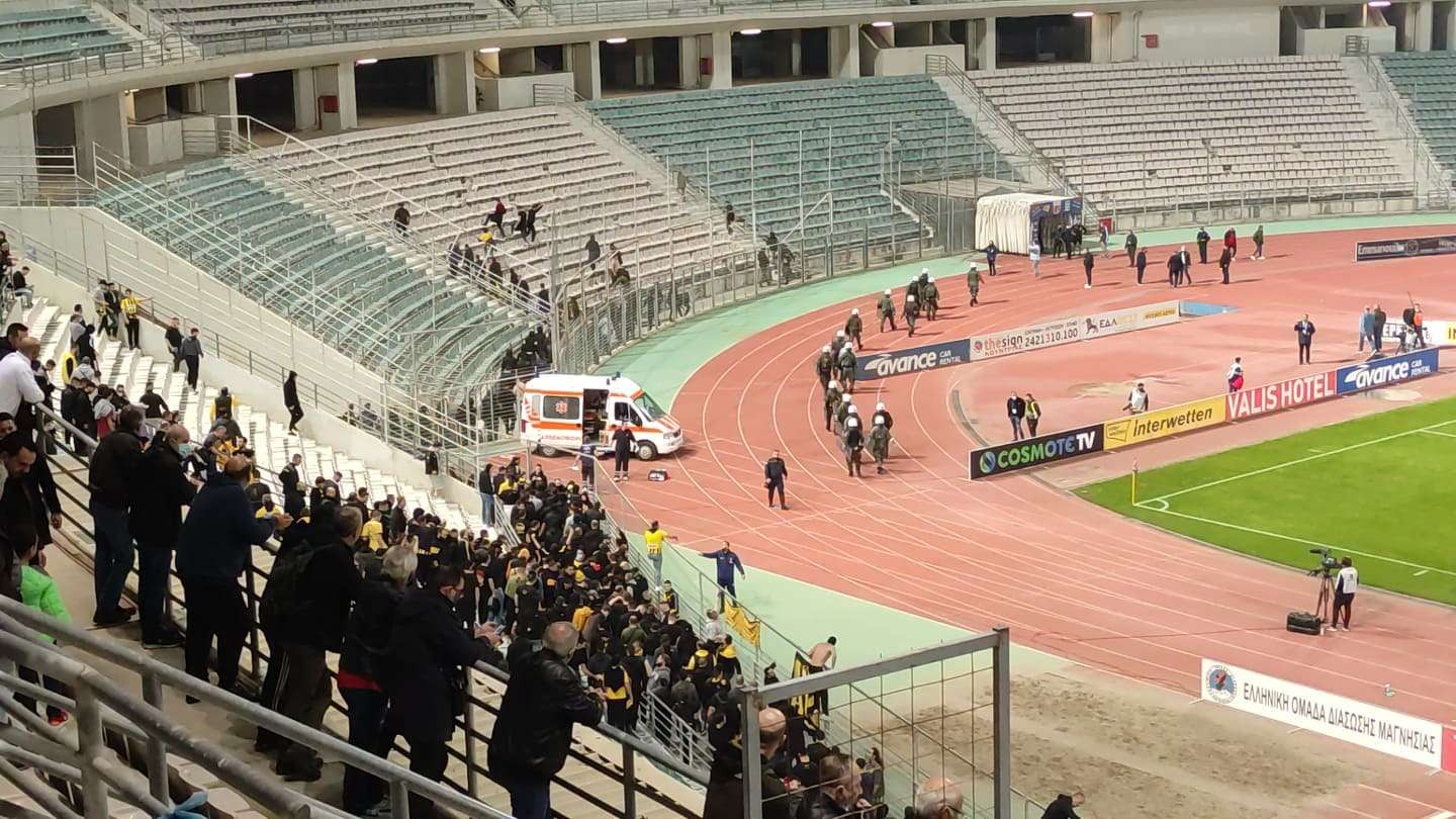 Αυτή την ώρα μετακινούνται οι οπαδοί του Άρη από τα επίσημα στο πέταλο των φιλοξενούμενων.