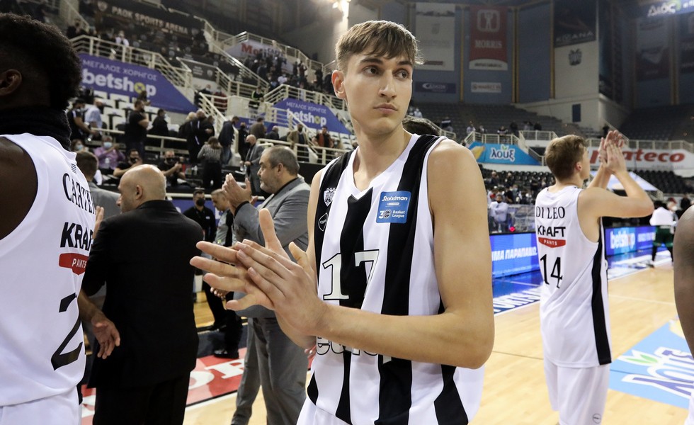 Μάλιστα, στις 18 Απριλίου 2021 πραγματοποιεί το ντεμπούτο του στην Basket League, στο εντός έδρα παιχνίδι με τον Παναθηναϊκό, πετυχαίνοντας και τους πρώτους του πόντους, ευστοχώντας πίσω από τη γραμμή του τρίποντου.