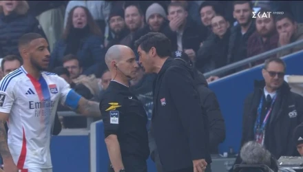 Ο Πορτογάλος τεχνικός της Λιόν ήταν εκτός εαυτού στα τελευταία λεπτά, με τον διαιτητή να τον αποβάλλει και εκείνον να γίνεται έξαλλος, φτάνοντας στο σημείο να κολλήσει το πρόσωπό του σε εκείνο του ρέφερι, με τους συνεργάτες και τους παίκτες του να τον απομακρύνουν.