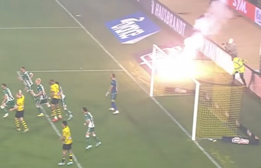 Ξεπερνάει κάθε όριο, η αναφορά της «για μια κροτίδα που έσκασε 15 μέτρα μακριά από τον πλησιέστερο ποδοσφαιριστή», όταν όλη η Ελλάδα είδε πόσο κοντά στον τερματοφύλακα της ομάδας μας, Αλμπέρτο Μπρινιόλι έπεσε η κροτίδα από την κερκίδα της ΑΕΚ (όπως φαίνεται και στις επισυναπτόμενες φωτογραφίες από την τηλεοπτική μετάδοση του αγώνα), εξαιτίας της οποίας ο γκολκίπερ μας έπεσε στο έδαφος και χρειάστηκε ιατρική φροντίδα για να συνεχίσει την αναμέτρηση.