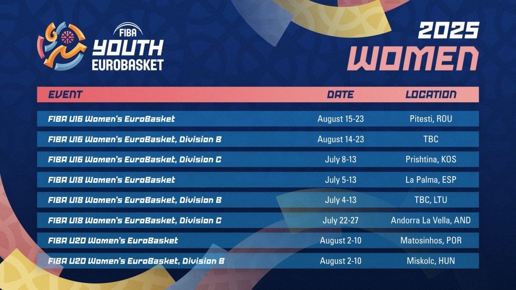 Πιο συγκεκριμένα, το EuroBasket U16 και U18 ανδρών θα διεξαχθεί στην Κωνσταντινούπολη (8-16/8) και το Βελιγράδι (26/7-3/8) αντίστοιχα. Από την πλευρά των γυναικών, το EuroBasket U20 Β' κατηγορίας θα γίνει στο Μίσκολτς (2-10/8), το EuroBasket U18 Α' κατηγορίας στην Λα Πάλμα (5-13/7).