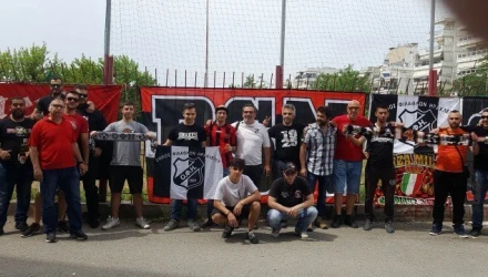 Εξω από τον σύνδεσμο των κοκκινόμαυρων στήθηκε τραπέζι με τους φίλους των δύο ομάδων να τρώνε και να πίνουν μαζί. Επίσης, έστησαν τα πανό τους και φωτογραφήθηκαν ο ένας δίπλα στον άλλο.
