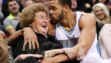 Αυτό που διακρίνει τον 26χρονο καλαθοσφαιριστή τον Ντένβερ Νάγκετς είναι το χιούμορ του και γενικότερα ο τρόπος που αντιμετωπίζει όσα γίνονται. Με πολύ χιούμορ αντέδρασε και στο παιχνίδι της ομάδας του με τους Πέλικανς, όταν ο ίδιος έπεσε στην αγκαλιά μια ηλικιωμένης κυρίας. Αποφάσισε λοιπόν να διαλύσει την αμηχανία και φίλησε την συγκεκριμένη κυρία στο μάγουλο.