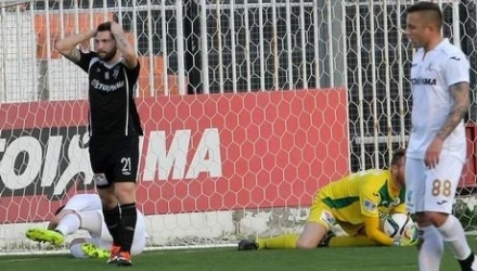 Η πιο αξιόλογη φάση των πρώτων 45 λεπτών καταγράφηκε στο 21', όταν μετά από ατομική προσπάθεια και γύρισμα του Μανώλη Ροβίθη προς τον Αλέξανδρο Περογαμβράκη, ο Δημοσθένης Μπαξεβανίδης έσωσε με υπερπροσπάθεια τα καρέ του Δημήτρη Κυριακίδη.