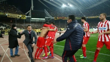Έχουν πέσει αντικείμενα προς την πλευρά των παικτών των Πειραιωτών που μετά τους πανηγυρισμούς τους βρέθηκαν σχεδόν αμέσως στα αποδυτήρια. Ο κόσμος της ΑΕΚ παραμένει στις θέσεις του, χειροκροτώντας τους παίκτες της "Ένωσης" που είναι ακόμα στο γήπεδο. Ο Περέιρα πήρε τους παίκτες και πήγαν στα αποδυτήρια