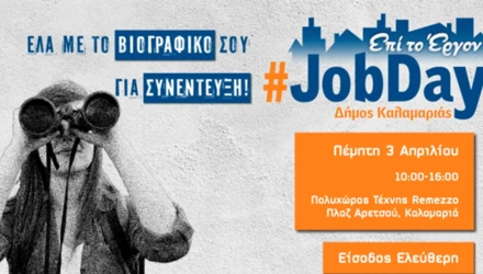 Το #JobDay του Δήμου Καλαμαριάς απευθύνεται σε όποιον αναζητά εργασία ή σκέφτεται να αλλάξει επάγγελμα και θέλει να διευρύνει τις γνώσεις και τις δεξιότητές του, δημιουργώντας ένα καλύτερο βιογραφικό και λαμβάνοντας όλες εκείνες τις πληροφορίες που θα τον βοηθήσουν να γίνει περιζήτητος στην αγορά εργασίας. Μέσα από ενδιαφέρουσες εισηγήσεις, οι ομιλητές, οι οποίοι προέρχονται από κλάδους που σχετίζονται με την αγορά και την εύρεση εργασίας, θα επιχειρήσουν με διαδραστικό τρόπο και σύγχρονη ματιά να ενισχύσουν τη δυναμική και τις γνώσεις του ενδιαφερόμενου κοινού. Ταυτόχρονα, στον χώρο θα βρίσκονται εκπρόσωποι μεγάλων εταιρειών, που θα κάνουν συνεντεύξεις με τους υποψηφίους που αναζητούν εργασία και θα πάρουν τα βιογραφικά τους.