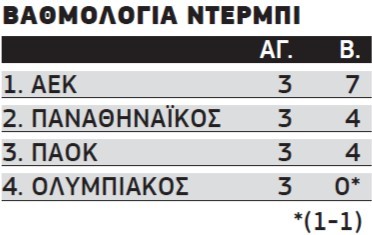 Εννοείται ότι τα πήγε καλά στα ντέρμπι ο ΠΑΟΚ, καθώς τα έδωσε και τα τρία στην Αθήνα. Εχει το αβαντάζ ότι θα τα δώσει εντός έδρας και τα τρία στον δεύτερο, αρκεί να αξιοποιήσει τον παράγοντα που λέγεται “Τούμπα”.