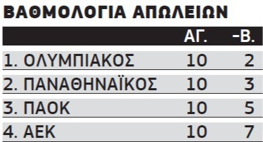 Οπως βλέπουμε, η ΑΕΚ θα μπορούσε άνετα να είναι η πρώτη αν δεν έχανε επτά βαθμούς “εκτός προγράμματος”, το ίδιο και ο ΠΑΟΚ αν δεν έχανε πέντε. Αρκούσε να είχε κερδίσει απλά το ματς με τον ΟΦΗ στο Ηράκλειο. Ο Παναθηναϊκός παραμένει πρώτος, έστω με έναν μόνο διαφορά από την ΑΕΚ, επειδή παρουσιάζει ισορροπία σε “εύκολα” ματς και σε ντέρμπι.