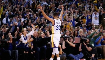 Ο MVP της κανονικής περιόδου, Στέφεν Κάρι, βρίσκεται στην κορυφή με το «παλαβό» τρίποντο που πέρτυχε στο πρώτο ημίχρονο του αγώνα με τους Μπλέιζερς.