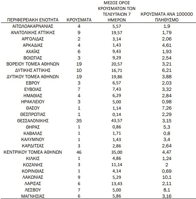 Αναλυτικά τα κρούσματα ανά περιοχή...