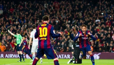 Την ώρα λοιπόν που ο Μέσι βραβεύτηκε πριν την έναρξη για την πρώτη θέση στους σκόρερ του ισπανικού πρωταθλήματος, άφησε την αρχική... αίγλη στον Νεϊμάρ, ο οποίος εκμεταλλεύτηκε την αδράνεια στην άμυνα των ''ροχιμπλάνκος'' κι άνοιξε το σκορ στο 12ο λεπτό ''. Ο Βραζιλιάνος έφτασε τα 17 γκολ σε 22 αγώνες σε όλες τις διοργανώσεις με τους ''μπλαουγκράνα''.