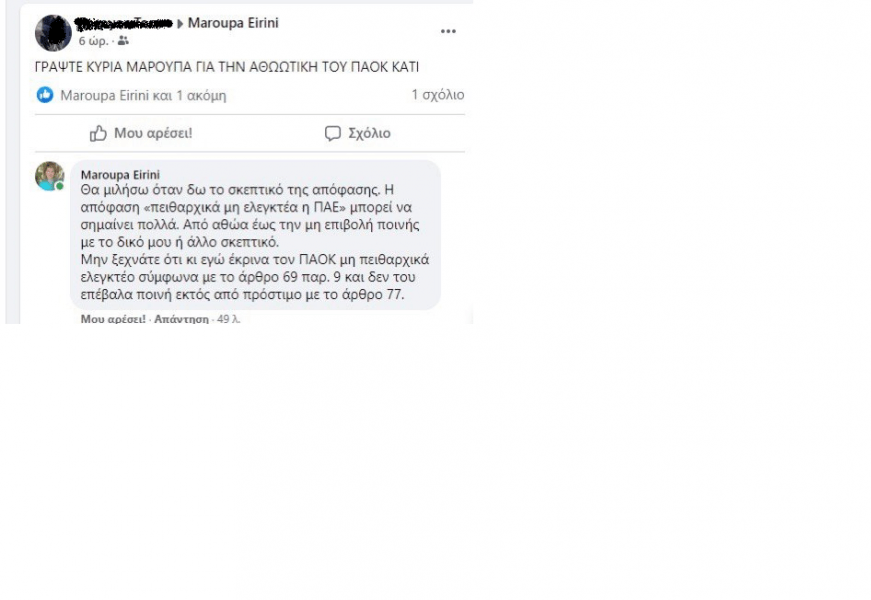 Μαρούπα: «Κι εγώ έκρινα τον ΠΑΟΚ πειθαρχικά μη ελεγκτέο»