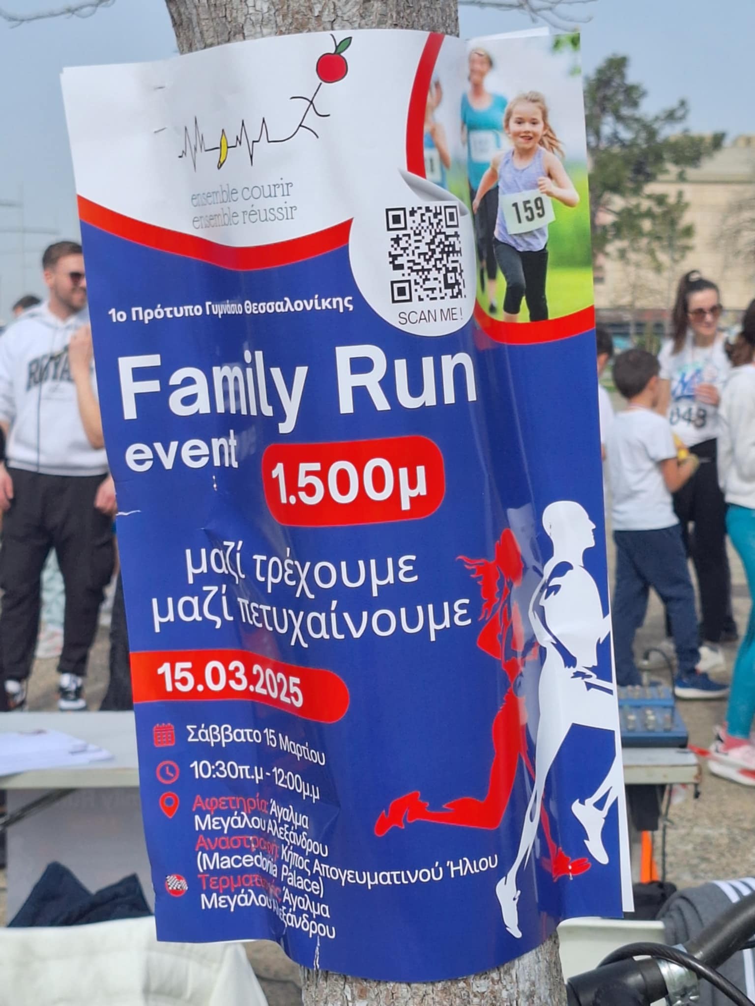 Με σύνθημα το «μαζί τρέχουμε, μαζί πετυχαίνουμε», το 1ο Πρότυπο Γυμνάσιο Θεσσαλονίκης, σε συνεργασία με τον δήμο Θεσσαλονίκης, διοργάνωσε τον οικογενειακό αγώνα 1.500 μέτρων, ο οποίος ξεκίνησε στις 10:30 από το άγαλμα του Μεγάλου Αλεξάνδρου.