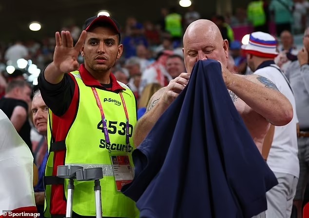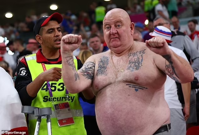Ένας οπαδός της Εθνικής ομάδας της Αγγλίας, που είναι γνωστό ότι συνηθίζει να παρακολουθεί τα παιχνίδια των Τριών Λιονταριών γυμνόστηθος, έλαβε εντολή από έναν υπεύθυνο της ασφάλειας του Κατάρ να φορέσει την μπλούζα του στην χθεσινή νίκη της Αγγλίας απέναντι στην Ουαλία με σκορ 0-3.