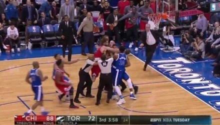 Το NBA αποτελεί ούτως ή άλλως το πιο φαντασμαγορικό θέαμα στο μπάσκετ. Ενίοτε πάντως, κάποιοι από τους πρωταγωνιστές του φροντίζουν να δώσουν στο κοινό και μία δόση από άλλα... σπορ. Ο Σερζ Ιμπάκα των Τορόντο Ράπτορς και ο Ρόμπιν Λόπες των Σικάγο Μπουλς, μετέτρεψαν το παρκέ σε ρινγκ, προσφέροντας απλόχερα θέαμα με άφθονες γροθιές.