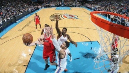 Στην κορυφή ο Σαμ Ντέκερ των Χιούστον Ρόκετς που έκανε ένα απίστευτο κάρφωμα στον αγώνα με τους Θάντερ, παρασύροντας στο διάβα του τον... άμοιρο Ενές Καντέρ που θέλησε να τον σταματήσει.