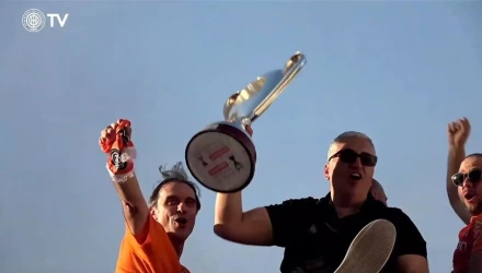 Η κορύφωση ήρθε όταν το τρόπαιο υψώθηκε ξανά, αυτή τη φορά όχι μόνο από τους ποδοσφαιριστές αλλά και από τους ίδιους τους φιλάθλους, που το σήκωσαν συμβολικά στον αέρα.