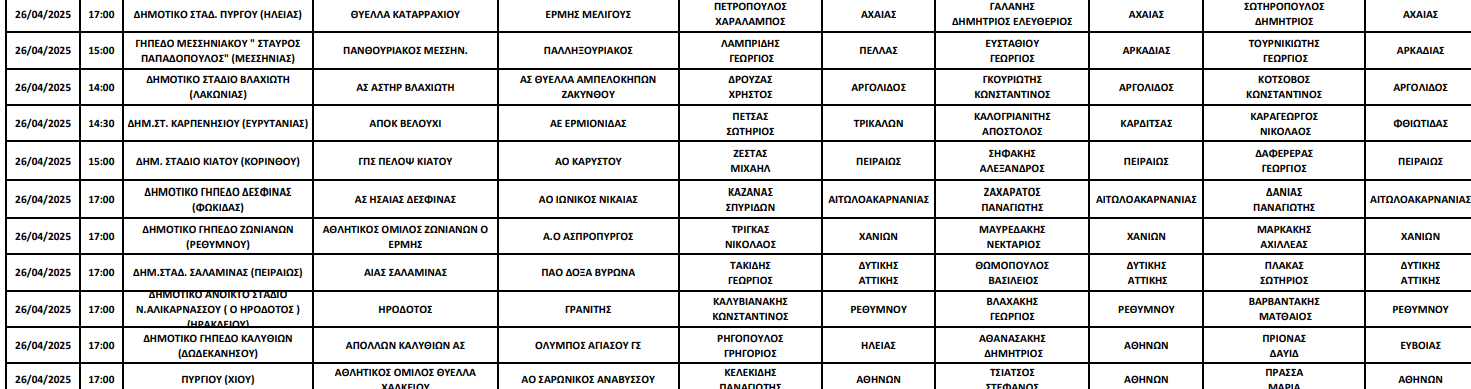 26/4: Εορδαικός Πτολεμαΐδας-Στυλίδα Φθιώτιδας Μαργιόλας Καρδίτσας, Σκούτας Δ Φωκίδας, Παπαγεωργόπουλος Τρικάλων