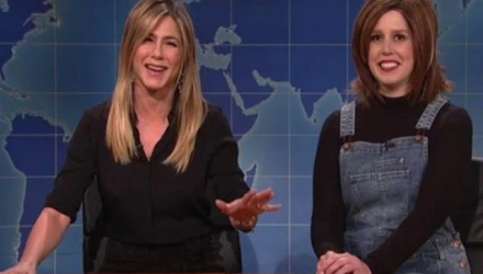 Η Τζένιφερ Άνιστον καλεσμένη στην εκπομπή Saturday Night Live συνάντησε την Vanessa Bayers που κατάφερε με εξαιρετική ακρίβεια και αρκετή δόση χιούμορ να μιμηθεί την Rachel Green, το ρόλο της δηλαδή της Τζένιφερ στην σειρά.