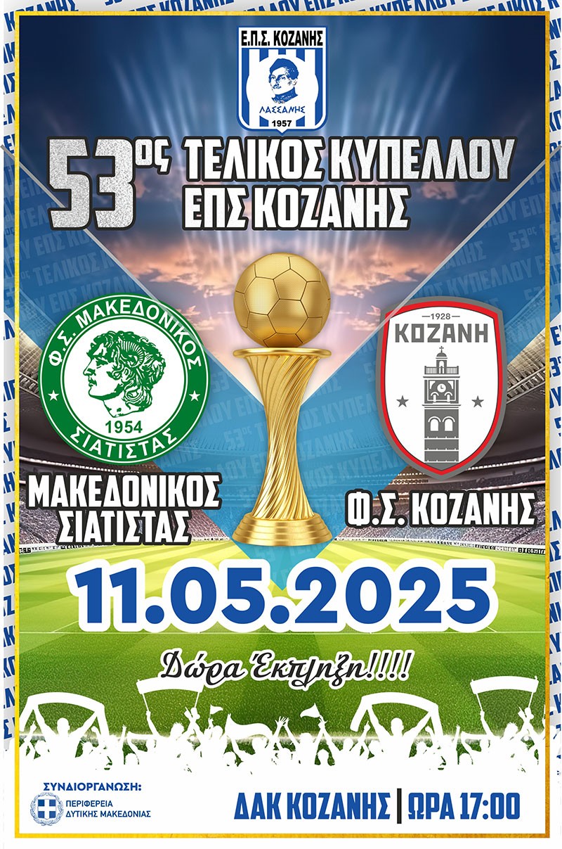 ΜΑΚΕΔΟΝΙΚΟΣ ΣΙΑΤΙΣΤΑΣ - ΦΣ ΚΟΖΑΝΗ Γήπεδο:ΔΑΚ ΚΟΖΑΝΗΣ Ώρα:17.00