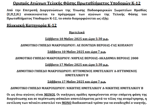 ΠΡΟΓΡΑΜΜΑ ΑΓΩΝΩΝ της 11.05.2025