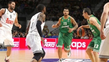 Από το πρώτο λεπτό η «βασίλισσα» έλεγξε το ρυθμό και άρχισε να παίρνει μια διαφορά που κυμαίνονταν μεταξύ 6-10. Οι πράσινοι κατάφεραν να ... αγχώσουν τους γηπεδούχους στα μέσα του τρίτου δεκαλέπτου όταν και μείωσαν σε 46-42. Μετά, όμως, η Ρεάλ πάτησε γκάζι και εξαφανίστηκε φτάνοντας στη νίκη.