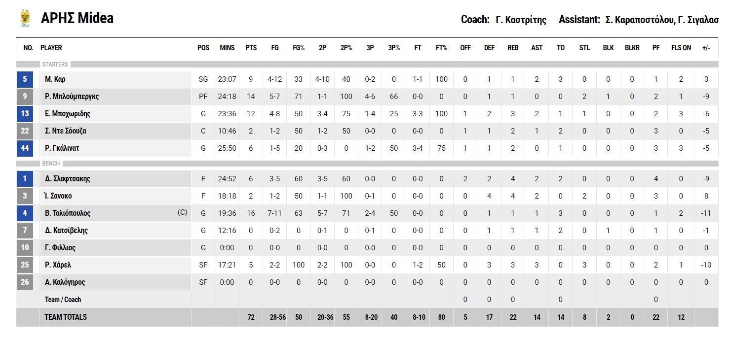 Εντυπωσιακό το πρώτο ημίχρονο, όπου είχε δυνατές μονομαχίες και οι δύο ομάδες πήγαιναν χέρι χέρι στο σκορ. Οι «κίτρινοι» ήταν ιδιαίτερα πιεστικοί στην άμυνα, εγκλώβισαν τους φιλοξενούμενους και τους ανάγκασαν σε λάθη, τα οποία εκμεταλλεύτηκαν και κατάφεραν να πάνε στα αποδυτήρια με ένα πόντο διαφορά (41-40).