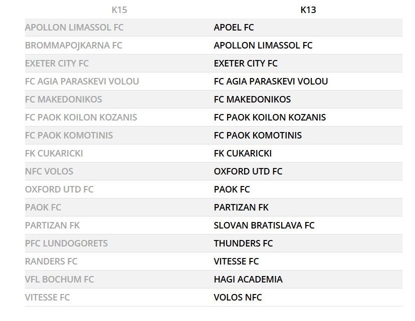 συλλόγους και ακαδημίες υψηλού επιπέδου