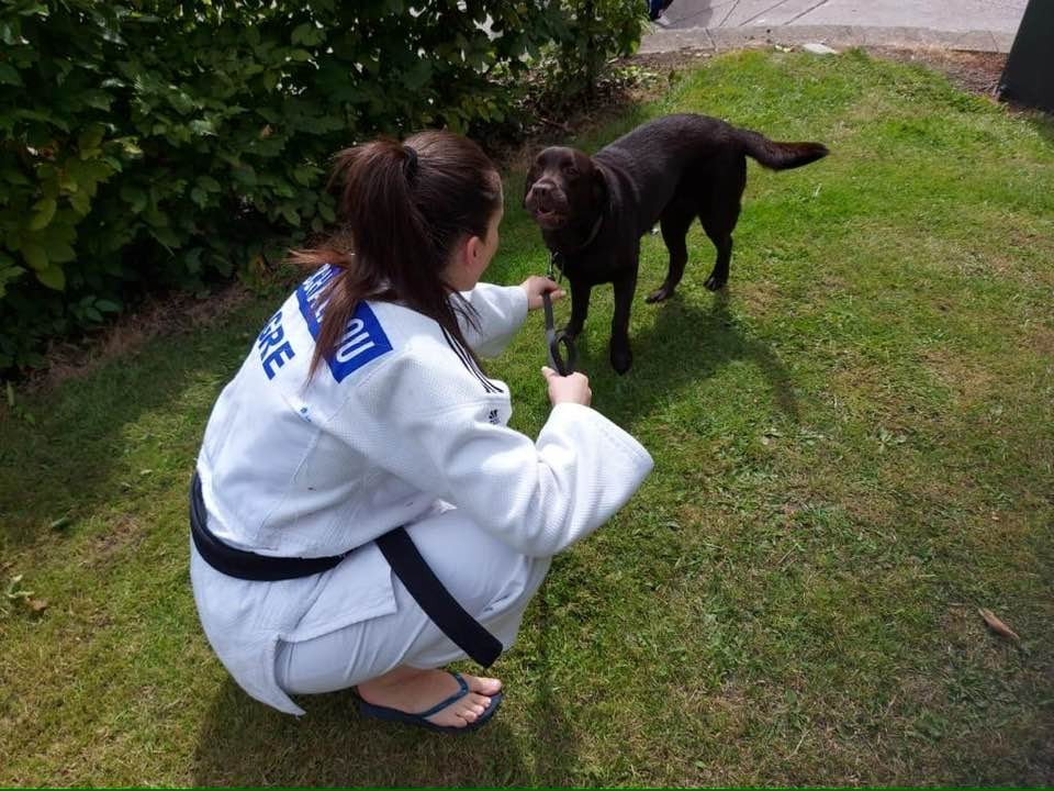 «Ήμουν στην Αθήνα πριν το Τόκιο για την προετοιμασία μου. Με φιλοξενούσε μια συναθλήτρια μου και το αγόρι της είχε σκύλο οδηγό. Ενθουσιάστηκα. Γνώρισα τον εκπαιδευτή του (Γιάννης Κονδράρος) και μου έλυσε όλες τις απορίες που είχα. Ήθελα να δοκιμάσω, έκανα την αίτηση και κάναμε συνεκπαίδευση στην Liberty Guide Dogs. Το όνομα της είναι Joy. Είναι υπάκουη, χαδιάρα και κοινωνική. Τη λατρεύω».
