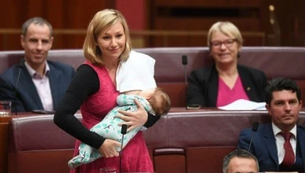 Η πολιτικός Λαρίσα Γουότερς που έγραψε ιστορία ως η πρώτη γυναίκα που θήλασε το μωρό της στο κοινοβούλιο της Αυστραλίας, αυτή τη φορά το έκανε ξανά, τη στιγμή που έβγαζε λόγο.