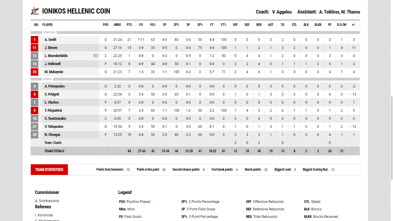 Ο ΠΑΟΚ με όπλο του το τρίποντο (5/8 στο πρώτο ημίχρονο) πήρε σημαντικές «ανάσες» στο σκορ, αλλά δεν κατάφερε να πάρει αυτός τα ηνία του σκορ σε ένα θεαματικό σκορ και πλούσιο θέαμα με τον Λοβ να είναι πρώτος σκόρερ για τον ΠΑΟΚ με 10 πόντους, ενώ ο Ιωνικός είχε ως οδηγό τον Έλμορ με 15.