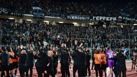 Κατά την απονομή της ομάδας πήρε...φωτιά το Πανθεσσαλικό, με τους φίλους του ΟΦΗ εκστασιασμένοι να πανηγυρίζουν με την ψυχή τους την κατάκτηση του Κυπέλλου.