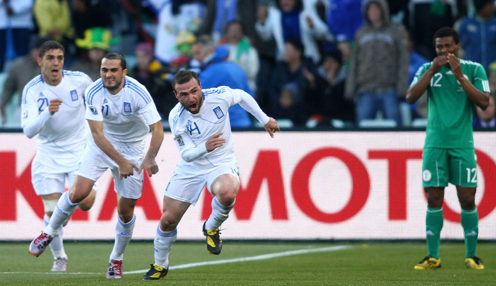 *Ο πανηγυρισμός του Σαλπιγγίδη και των υπολοίπων παικτών της Εθνικής στο πρώτο γκολ της Ελλάδας σε Μουντιάλ