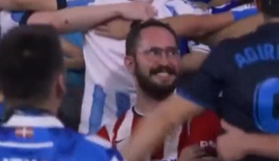 Σαν τη μύγα μες το γάλα: Oπαδός της Μπιλμπάο χαμογελά ανάμεσα σε εκστασιασμένους φίλους της Σοσιεδάδ