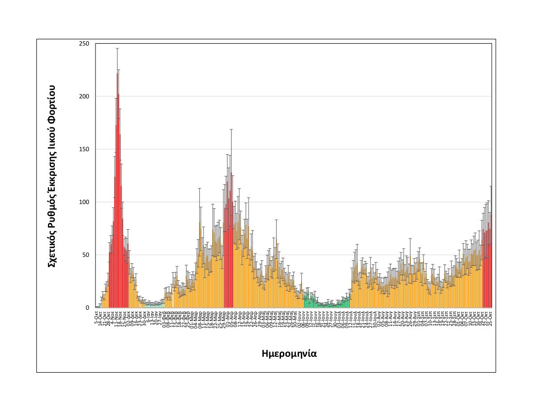 Οριακά σταθερή (+6%) σε σχέση με τη μέση τιμή των δύο αμέσως προηγούμενων μετρήσεων του Σαββάτου 23/10 και της Κυριακής 24/10.