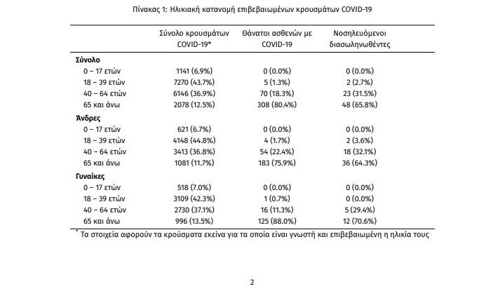 Η ηλικιακή κατανομή των (α) συνολικών κρουσμάτων, (β) των περιστατικών που κατέληξαν σε θάνατο και (γ) των ασθενών που νοσηλεύονται διασωληνωμένοι, είναι η ακόλουθη:
