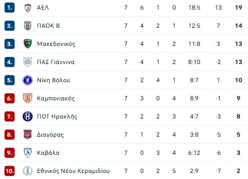 Super League 2: Η βαθμολογία στον βόρειο όμιλο μετά την 7η αγωνιστική