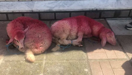 Θεσσαλονίκη: Έδεσαν αρνάκια και τα έβαψαν κόκκινα έξω από εκκλησία